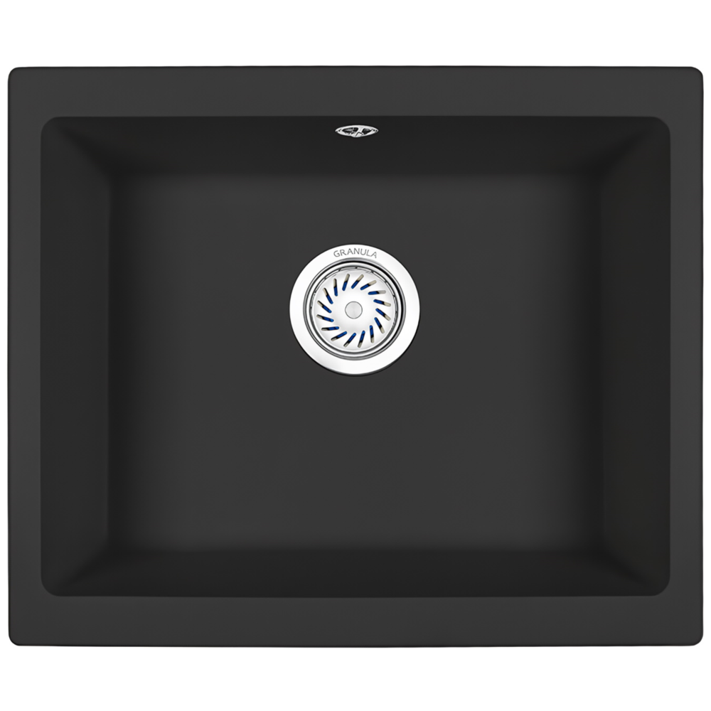 Кухонная мойка кварцевая Granula GR-5551 квадратная подстольная односекционная, подстольная, чаша 500х380, цвет черный (5551bl)