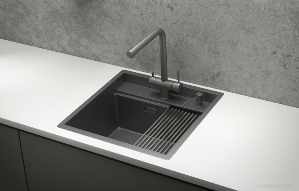 5551, графит (чёрно-серый), кухонная мойка, кварц