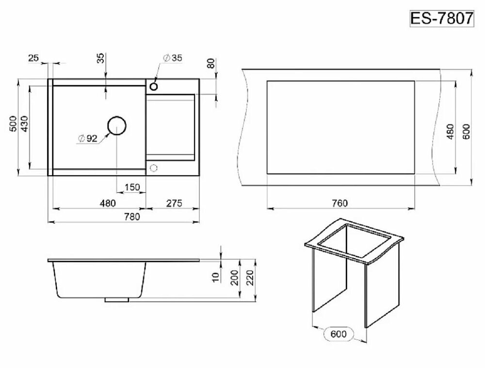 Купить ES-7807, чёрный, кухонная мойка, кварц, ESTETICA