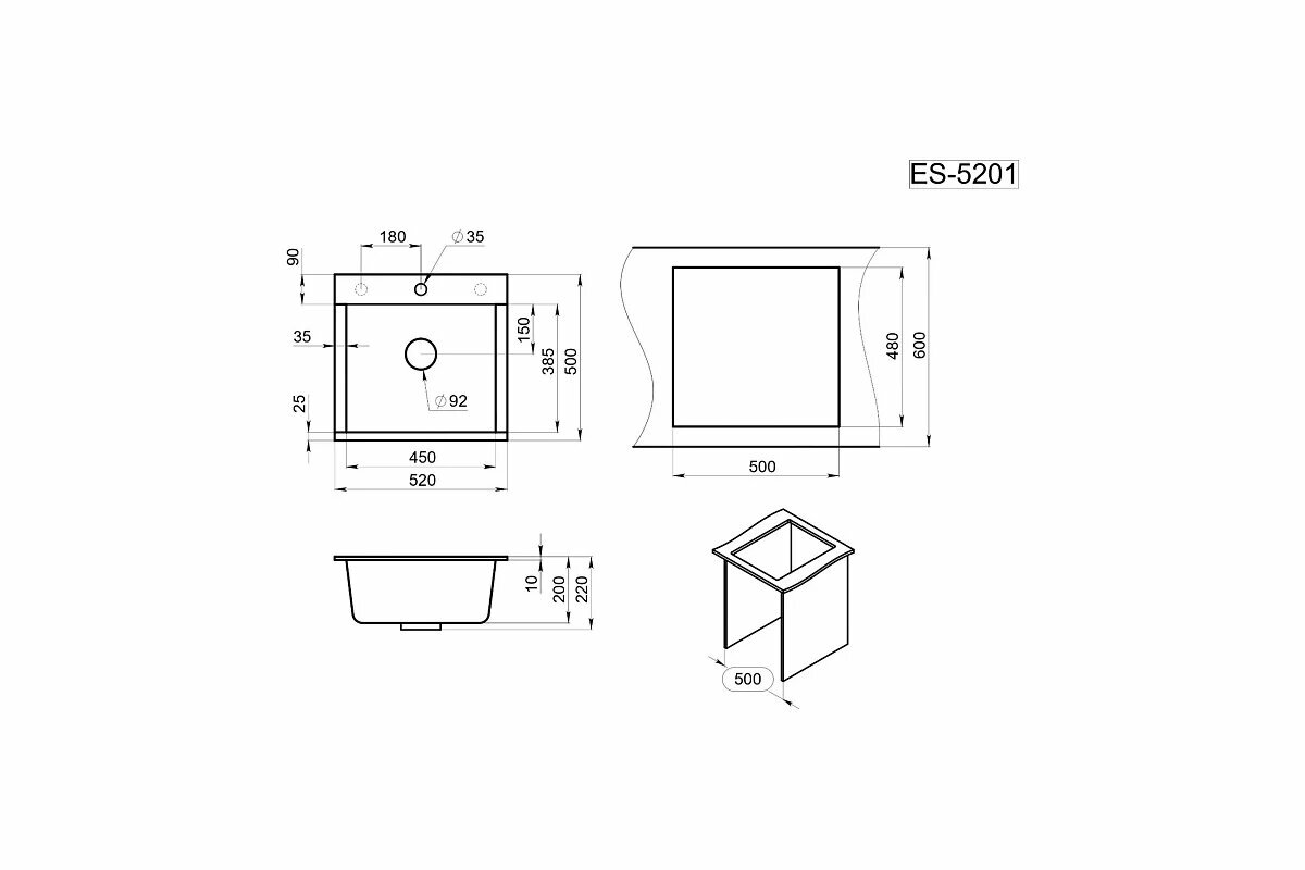 ES-5201, чёрный, кухонная мойка, кварц, ESTETICA