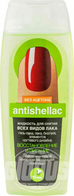 жидкость д/снятия гель-лака Antishellac Восстановление и Питание без ацетона с маслом миндаля 110мл