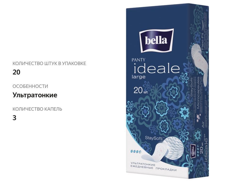 Bella Ideale large Прокладки женские гигиенические ежедневные , 20 шт. Впитываемость 3,5 капли