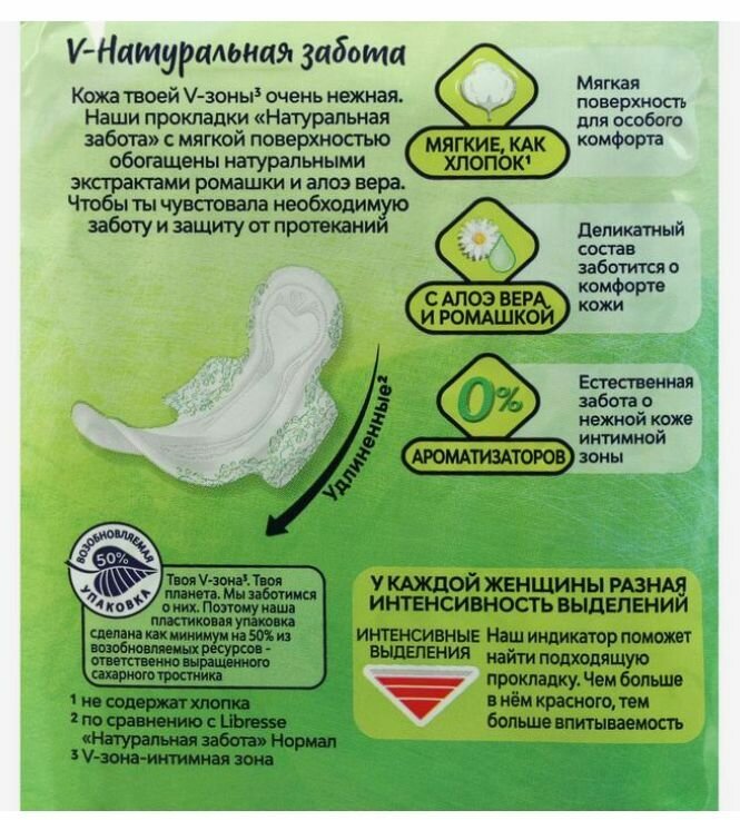 Гигиенические прокладки Libresse Natural Care Super Soft, без отдушек, 26 см, 5 капель интересное: