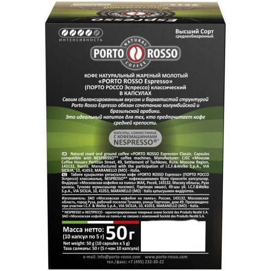 Кофе в капсулах Porto Rosso Espresso 10штx5г