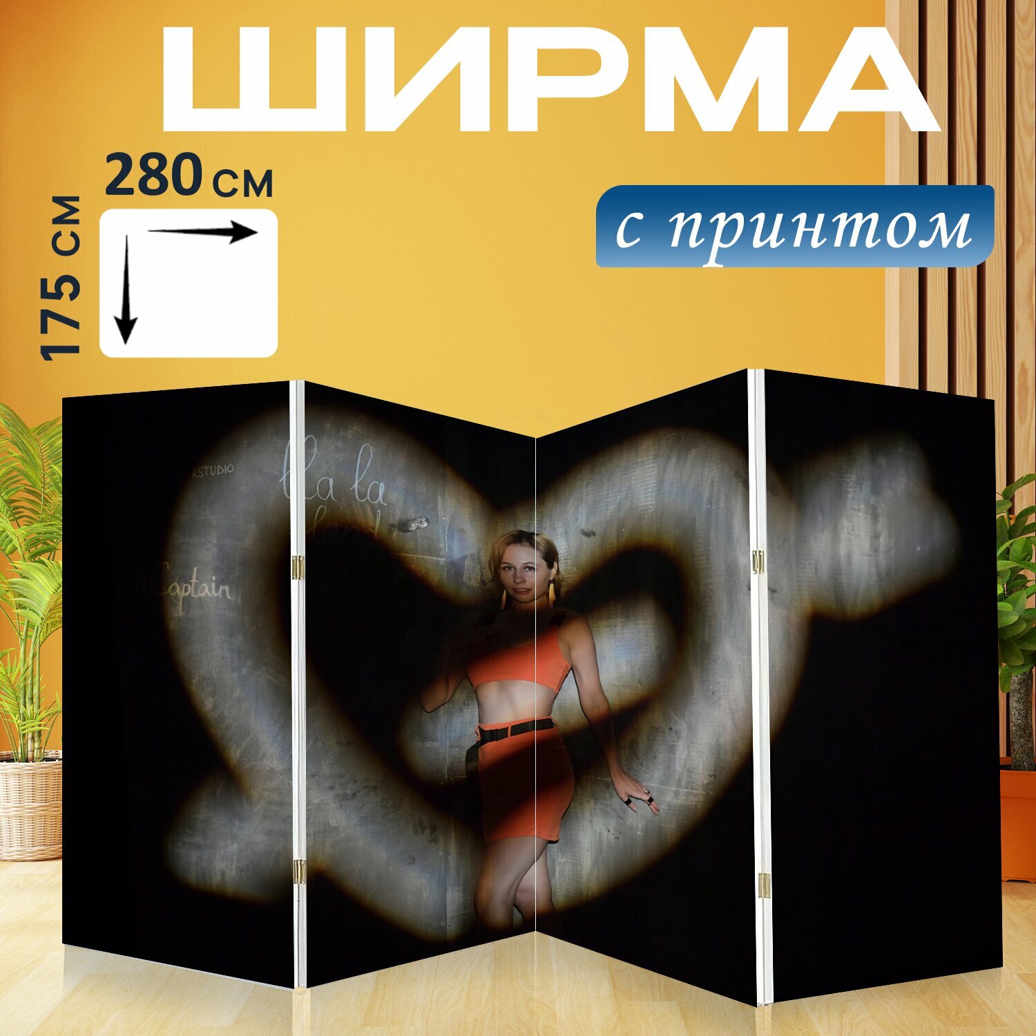 Ширма "Сердце, свет, проектор" перегородка для зонирования комнаты с принтом 280x175 см. на холсте интересное:
