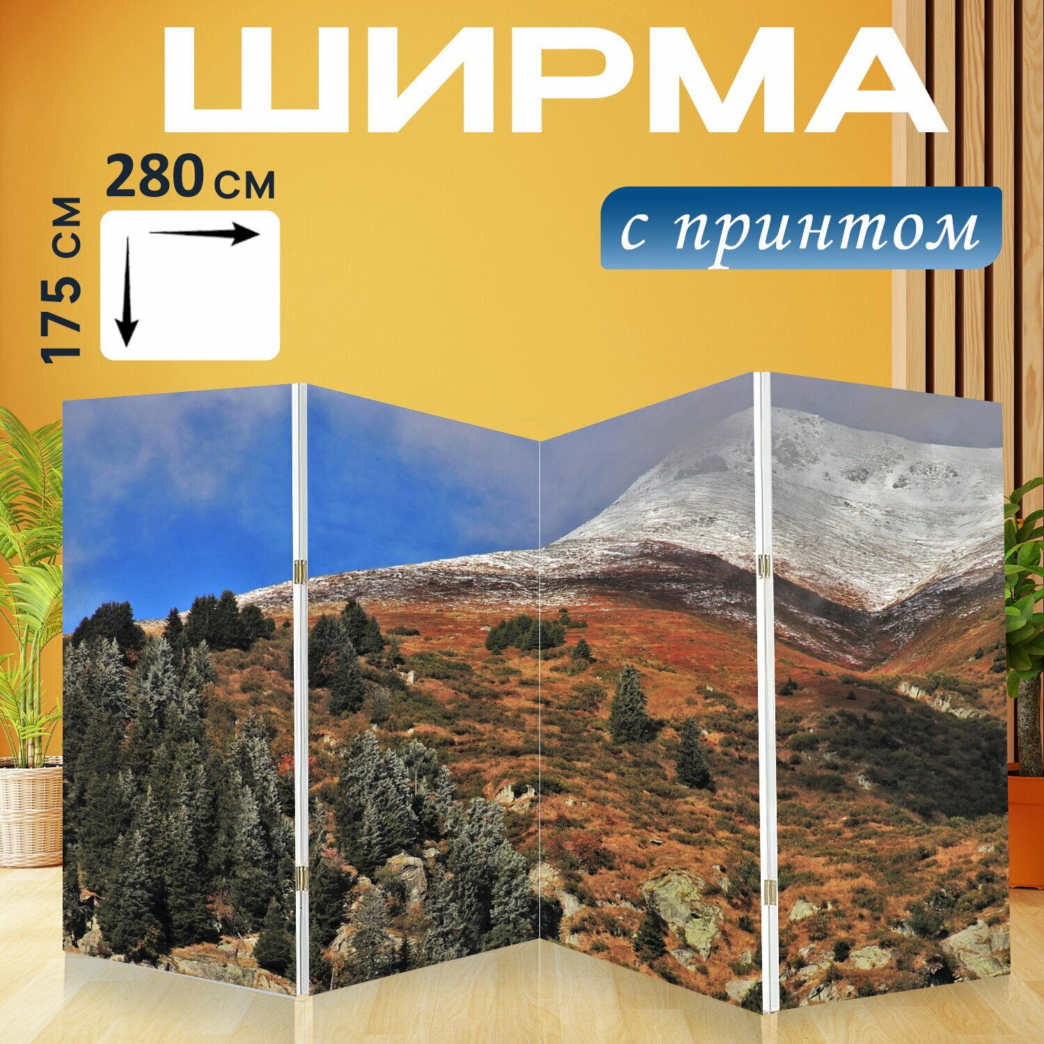 Ширма "Альпы, снежный, вверх" перегородка для зонирования комнаты с принтом 280x175 см. на холсте интересное: