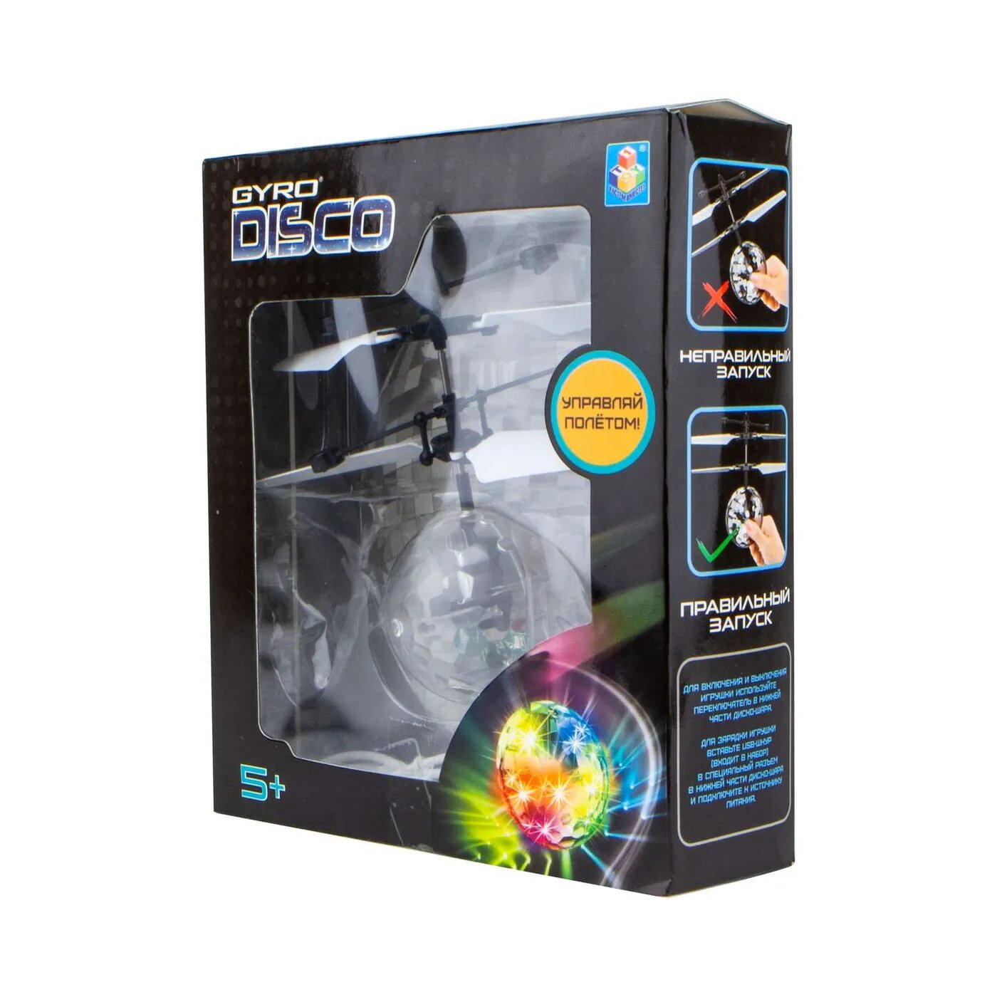 шар на сенсорном управлении 1toy Gyro-Disco, со светом, диаметр 4,5 см, коробка Т10794 .
