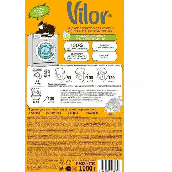 Купить Vilor Жидкое средство для стирки изделий из цветной ткани, 1000мл
