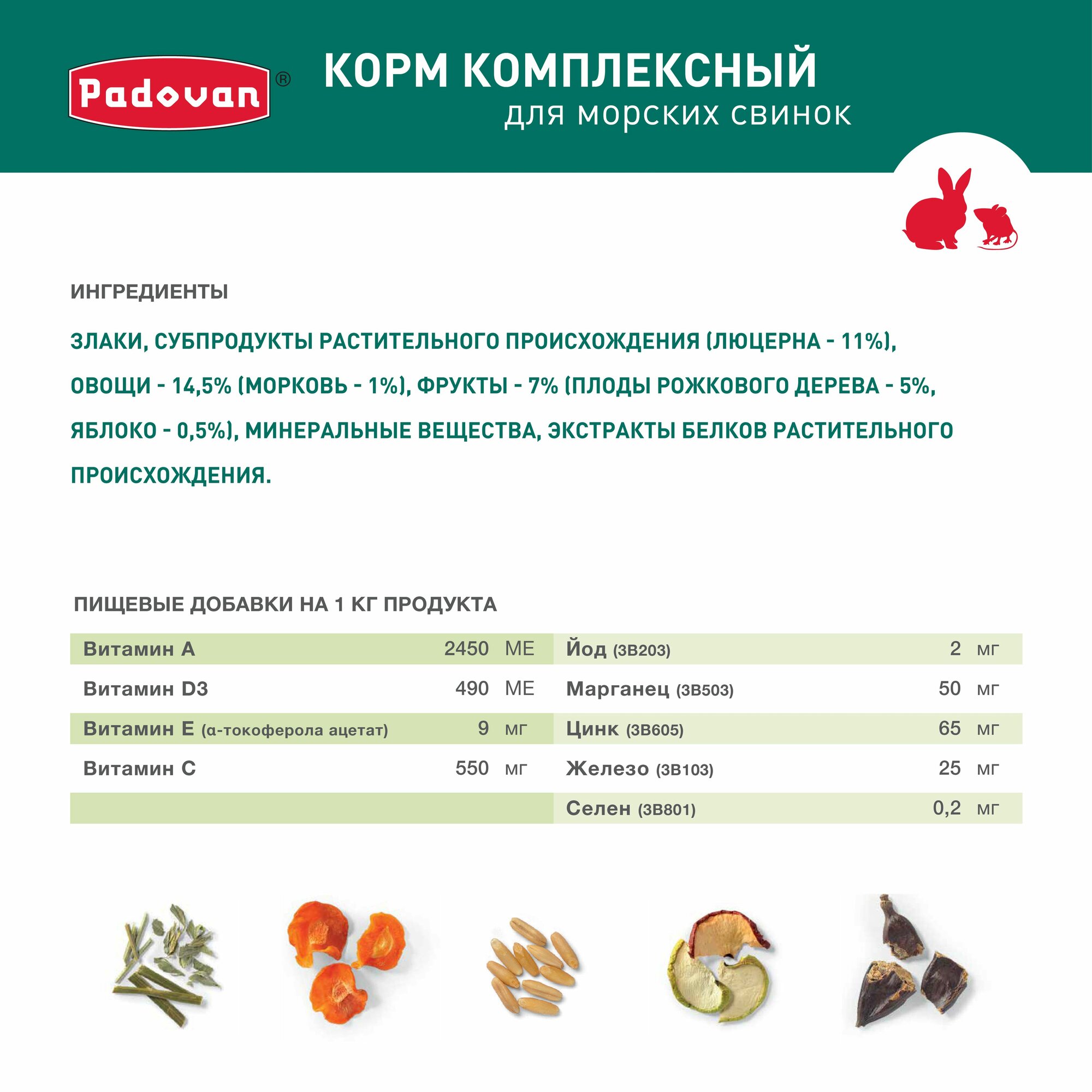 Padovan, корм для морских свинок корм Cavie, с витамином С, 850 гр, 3 шт