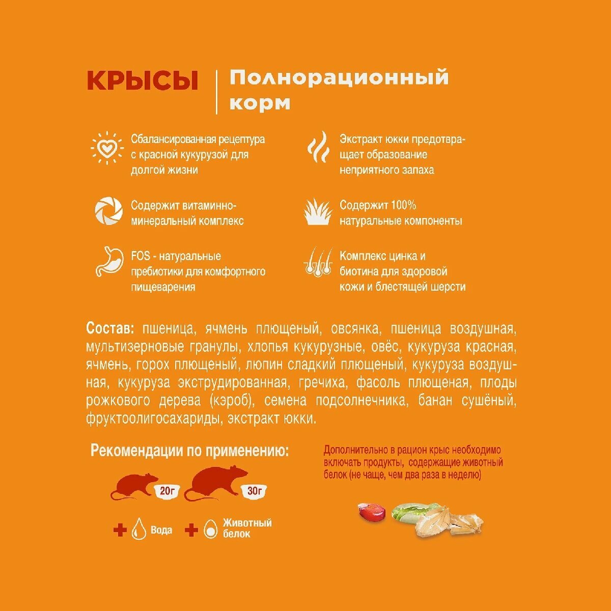 Крысы очень любят полезный много вкусняшик Недостатки: Быстро кончается Очень хороший и качественный корм |