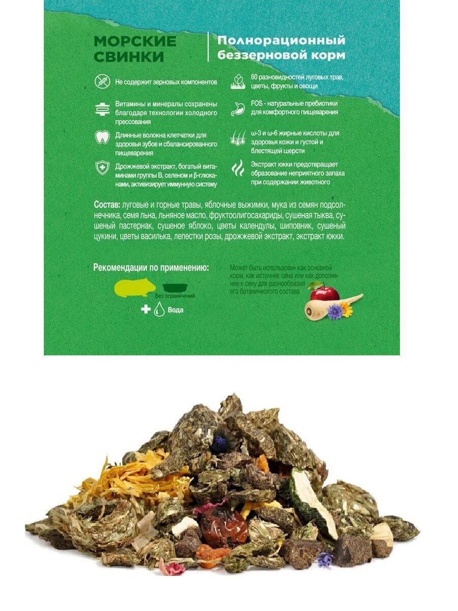Во первый в нем 60 видов полезных трав Во вторых множество овощей и фруктов И в третьих этот корм полезен для пищеварения и здоровья морской свинки. Однозначно 5 балов ? |
