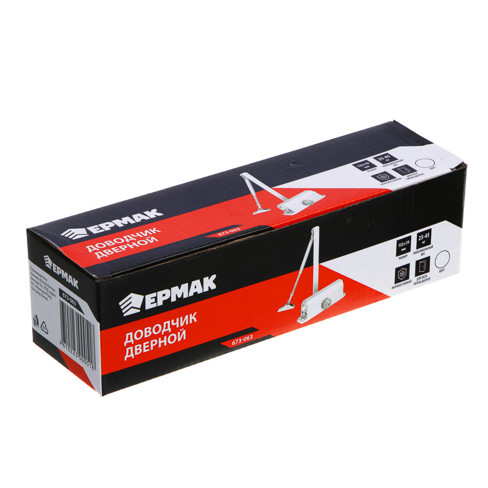 Ермак Доводчик дверной для дверей массой 25-45 кг, размер 132*19, цвет белый интересное: