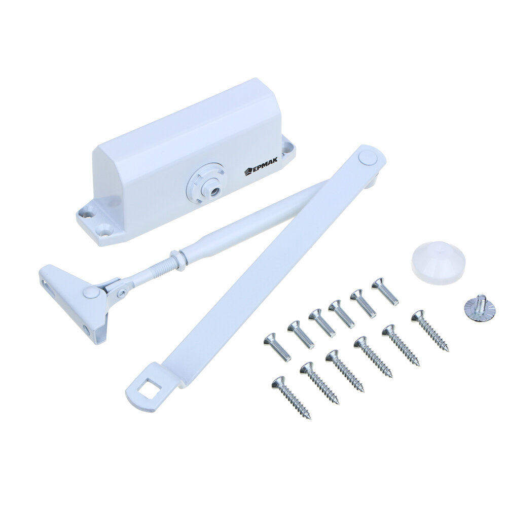 Купить Ермак Доводчик дверной для дверей массой 25-45 кг, размер 132*19, цвет белый
