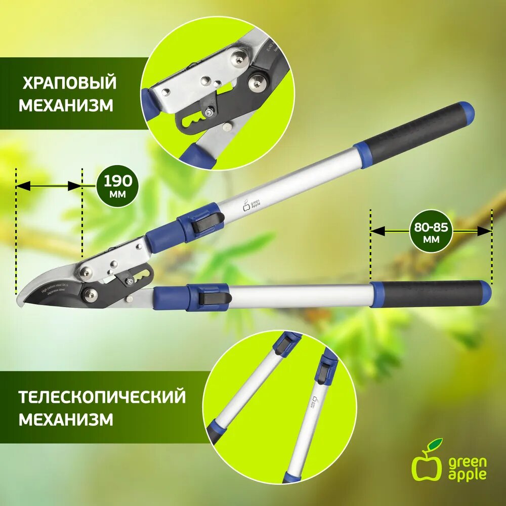 Green Apple GTBL12-007 GREEN APPLE Сучкорез телескопический (+30 см) с храповым механизмом, плоскостной