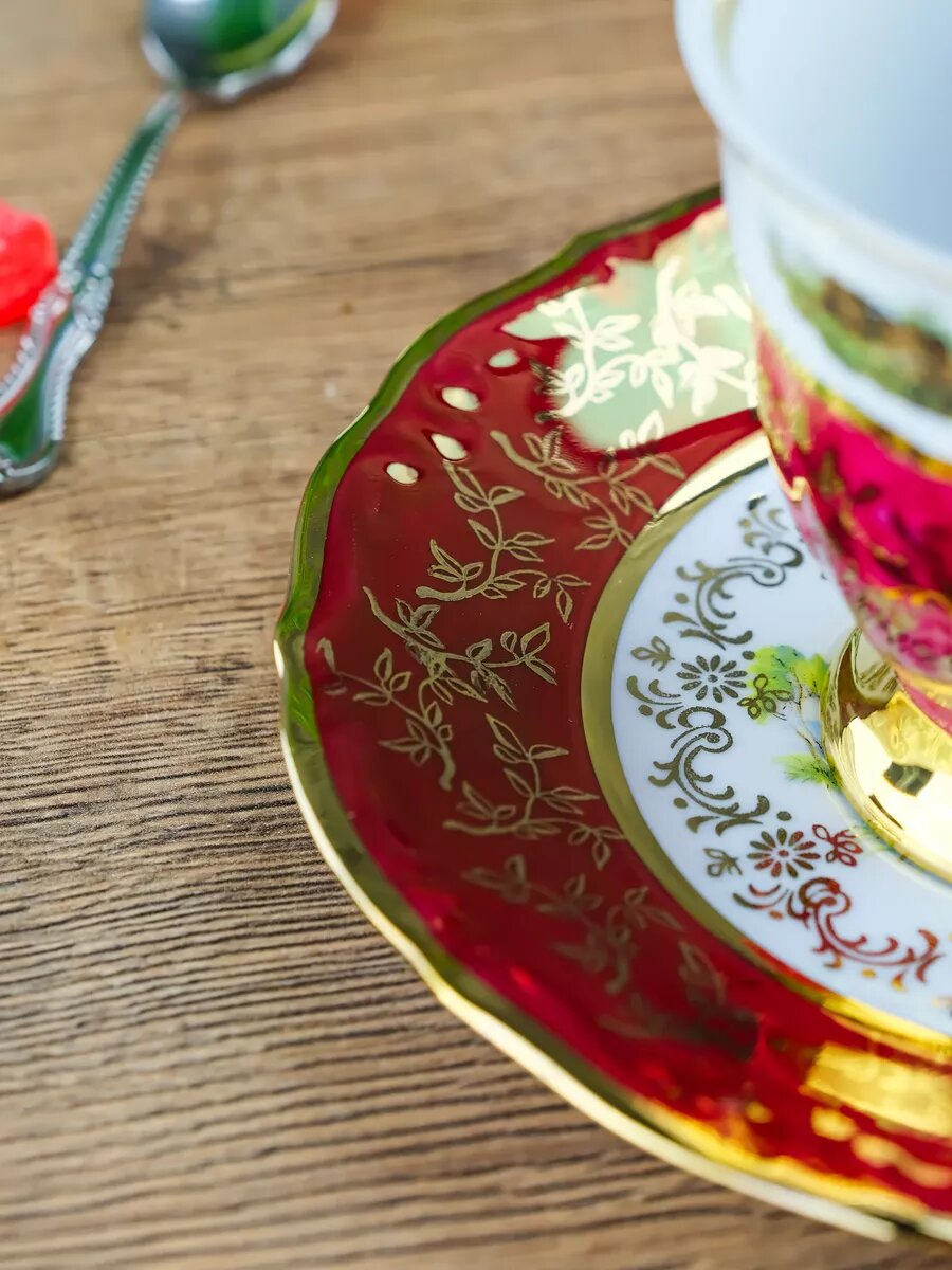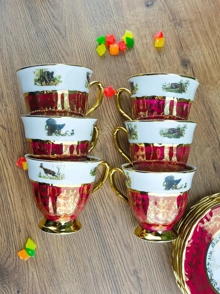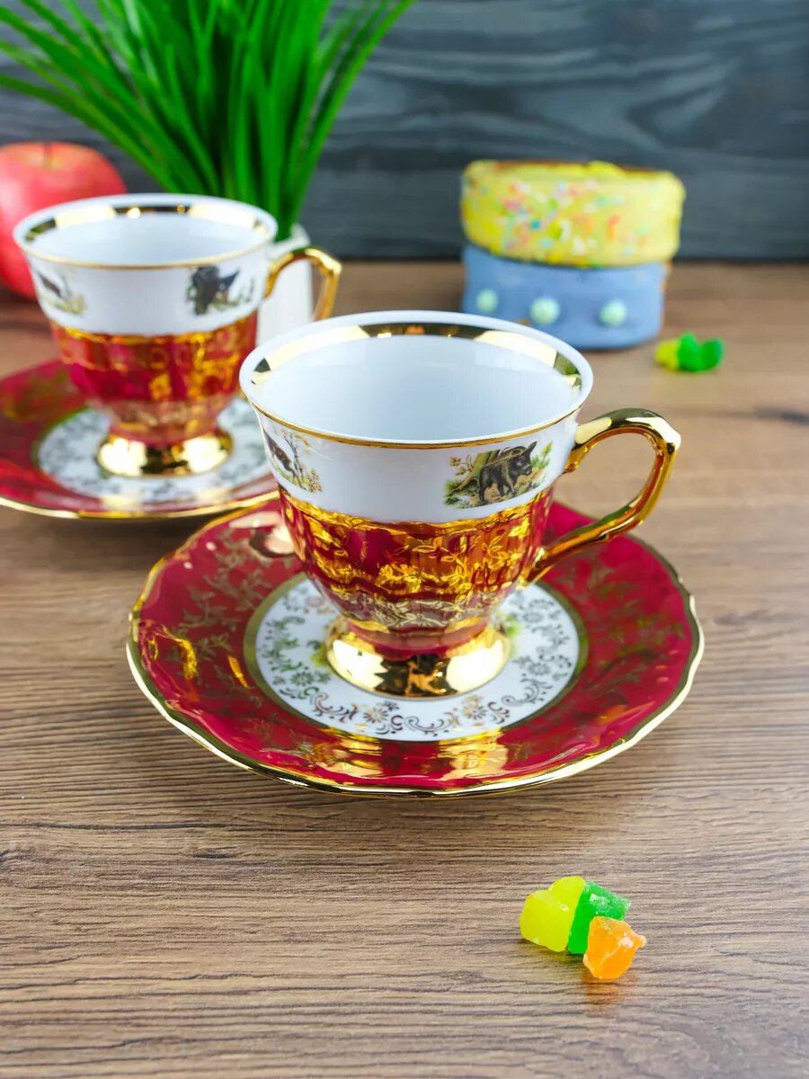 Набор кофейных пар Охота красная Мария-тереза S-P премиальный фарфор