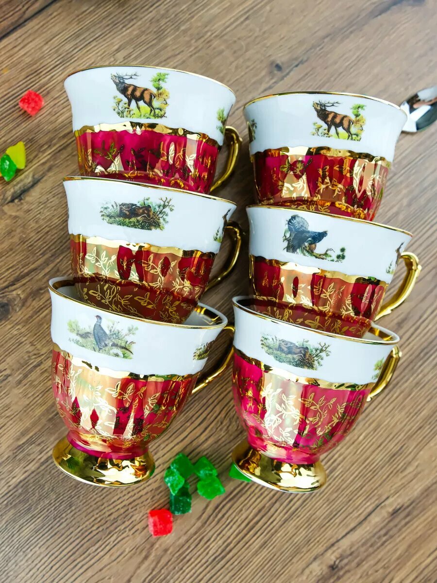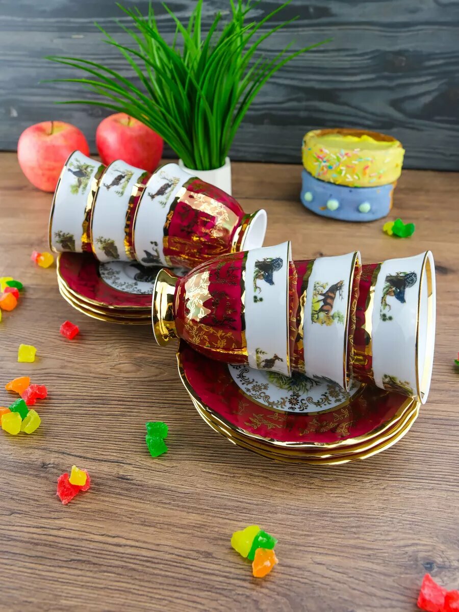 Набор кофейных пар Охота красная Мария-тереза S-P 6 шт интересное: