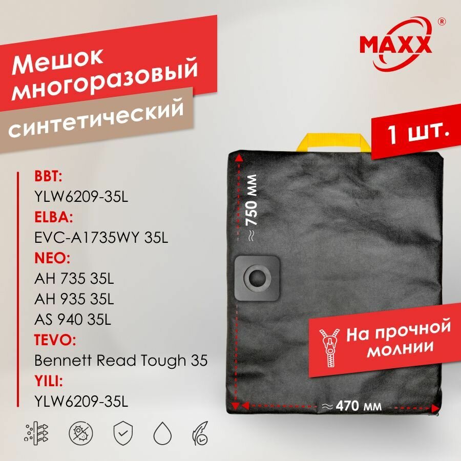 Мешок - пылесборник многоразовый на молнии для пылесосов Annovi Reverberi, BBT, ELBA, NEO, TEVO, YILI