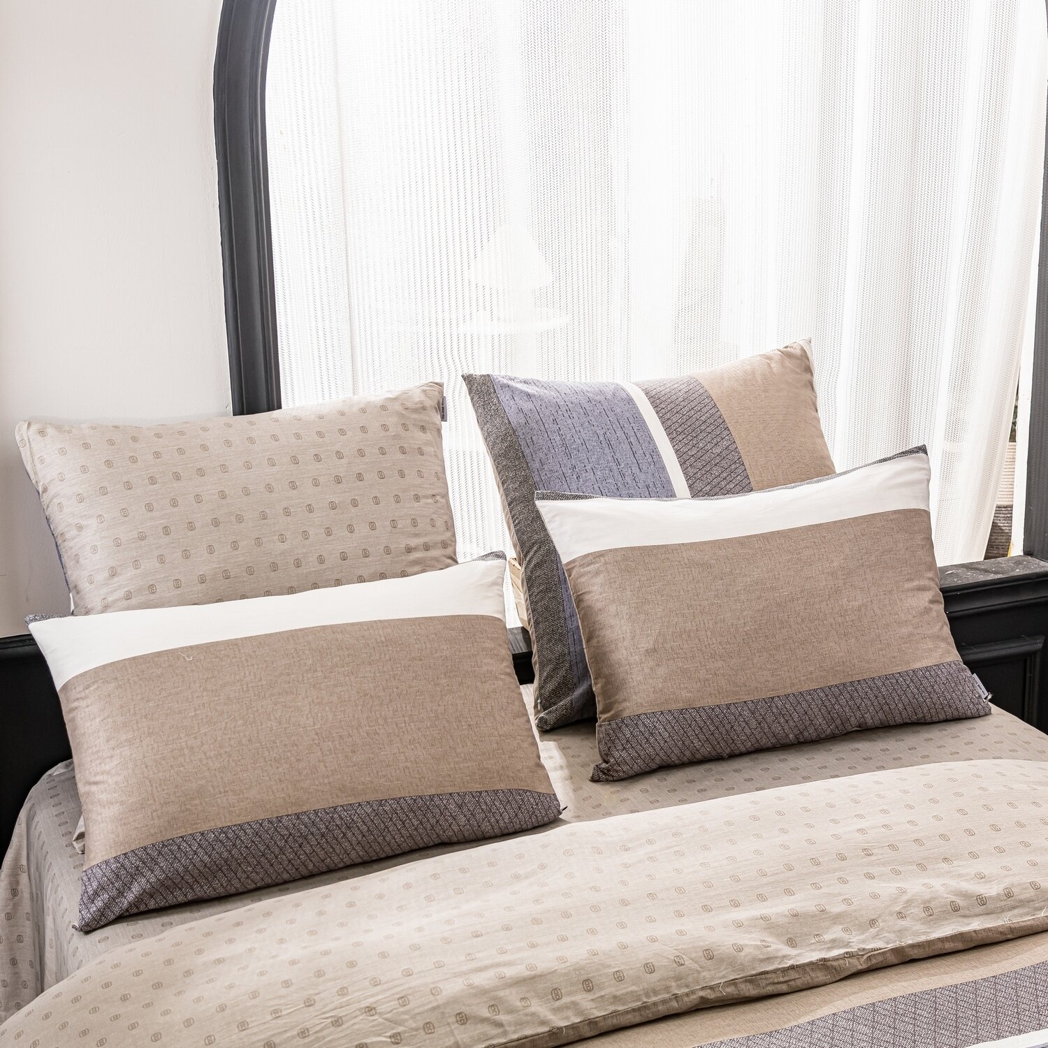 Комплект постельного белья Люкс Сатин 100% хлопок A369, Дуэт Семейный, наволочки 4 шт