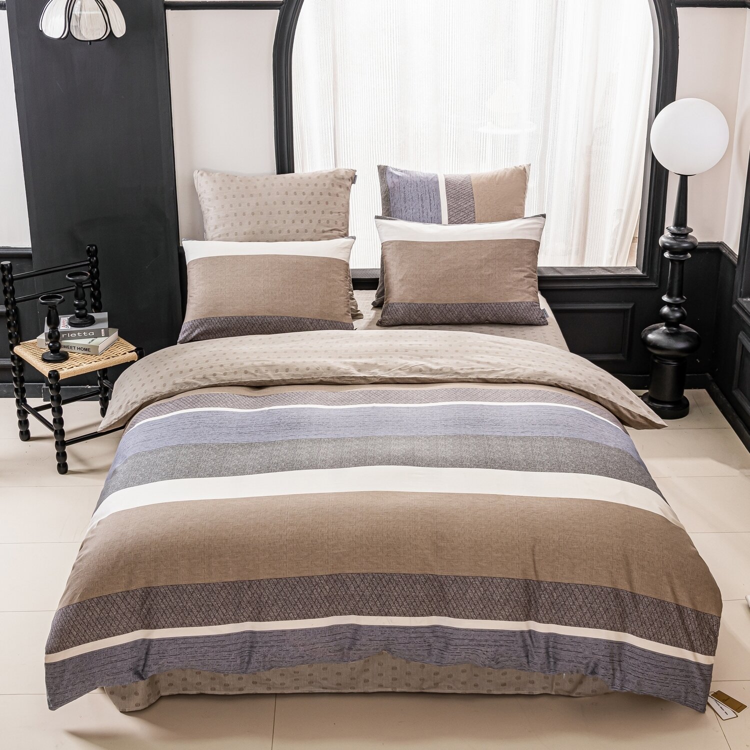 Комплект постельного белья Люкс Сатин 100% хлопок A372, Дуэт Семейный, наволочки 4 шт