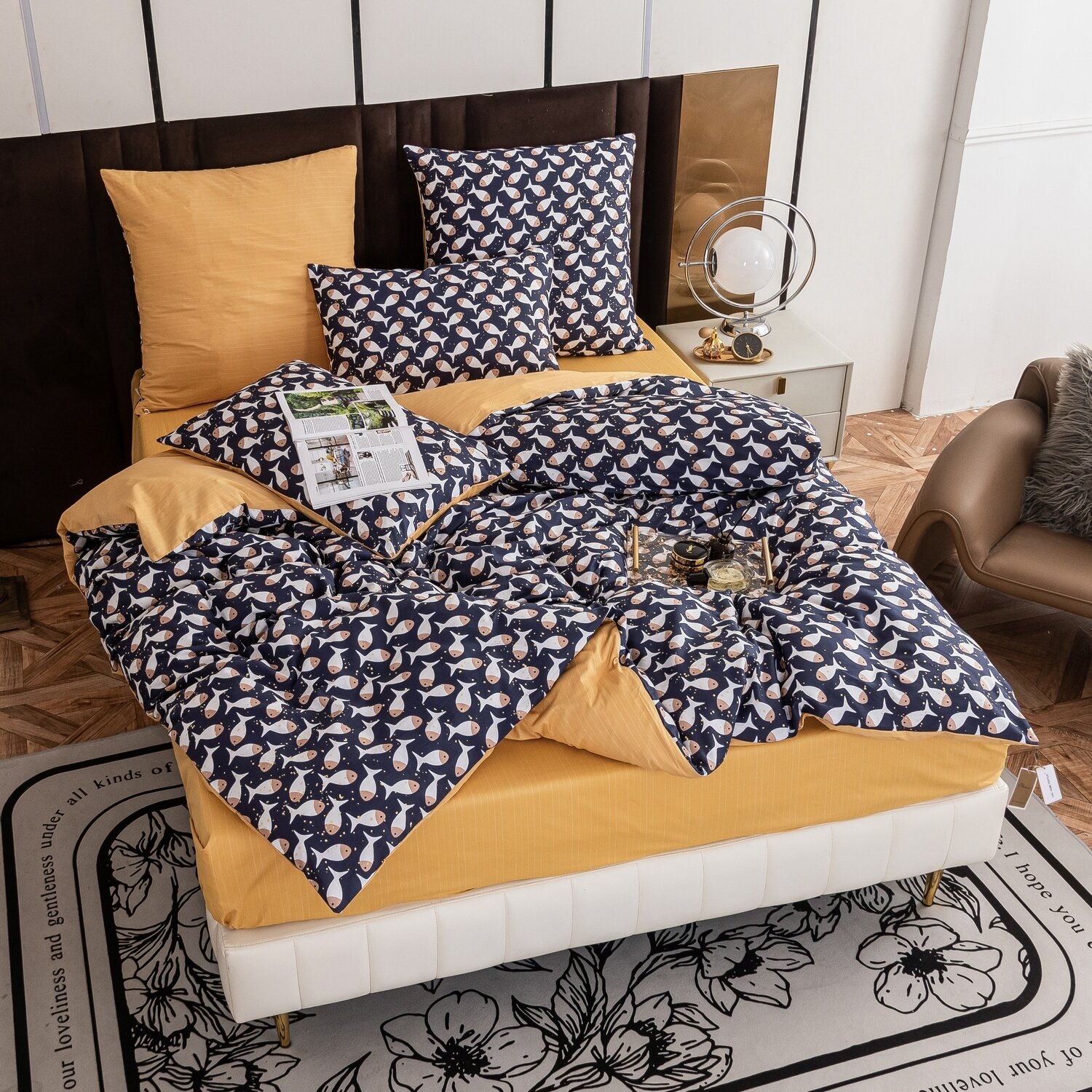 Постельное белье Двуспальный Сатин люкс желтый / Комплект постельного белья 2 спальное стандартная 230x250 VIVA HOME TEXTILE Хлопок /наволочка 70x70