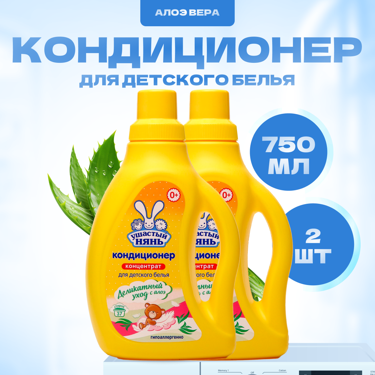Кондиционер для белья Ушастый нянь детский с алоэ вера 2 шт по 750 мл