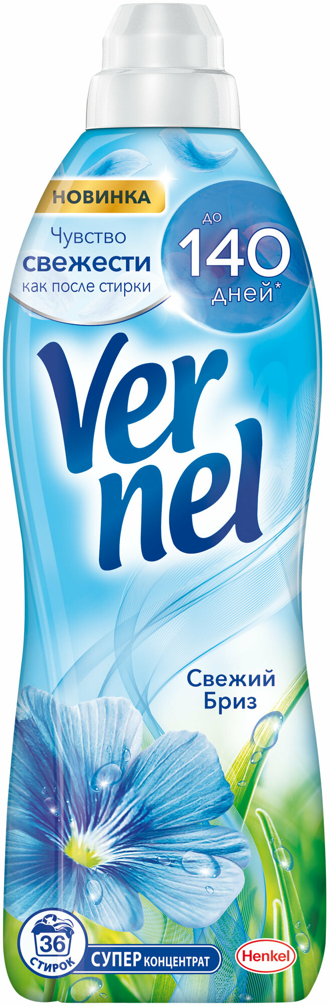 Концентрированный кондиционер ополаскиватель для стирки белья Вернель Свежий бриз, 0,910 л (34 стирки)
