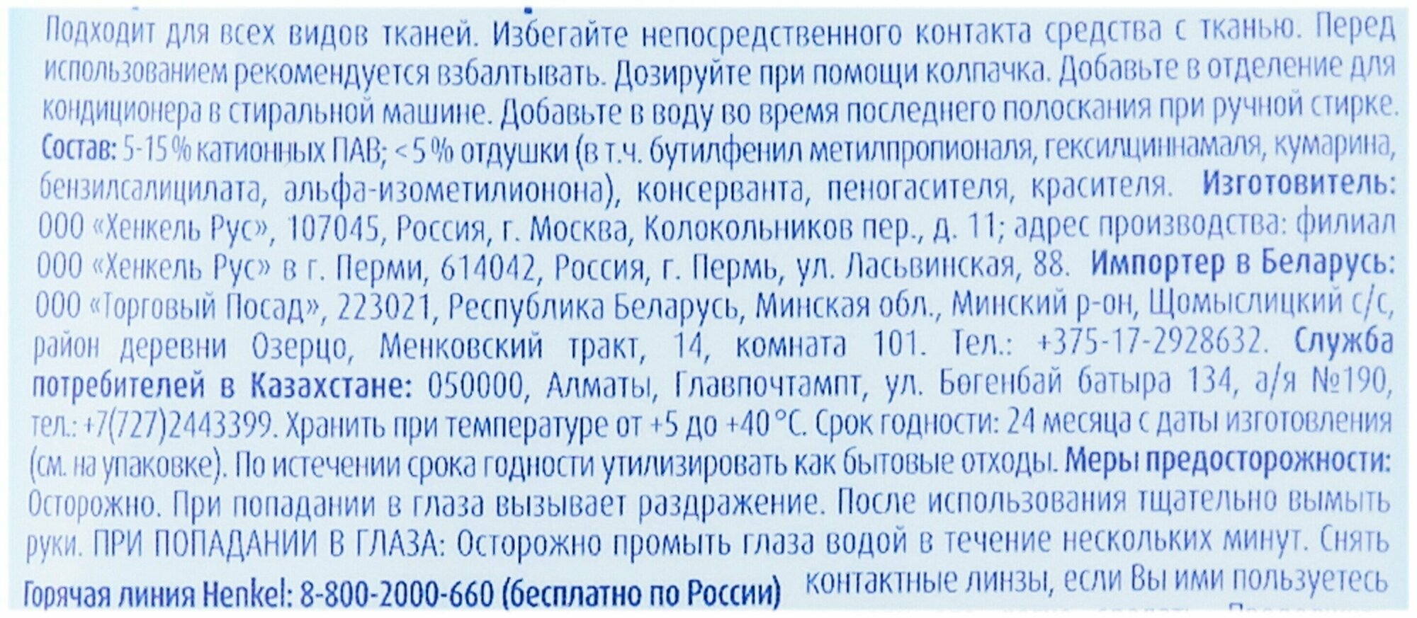| Плюсы: | Хороший и качественный ополаскиватель для белья |