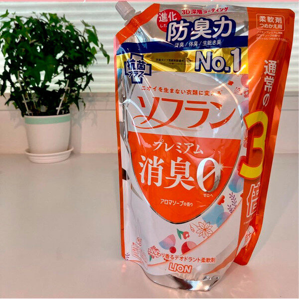 LION Кондиционер для белья SOFLAN Premium Deodorizer Zero- аромат роз,1260мл