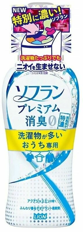 Lion Soflan Японский кондиционер для белья защищающий от неприятного запаха, аромат жасмина и акватики Premium Deodorizer Zero, 540мл. (бутылка) + 400мл. (мягкая уп.)