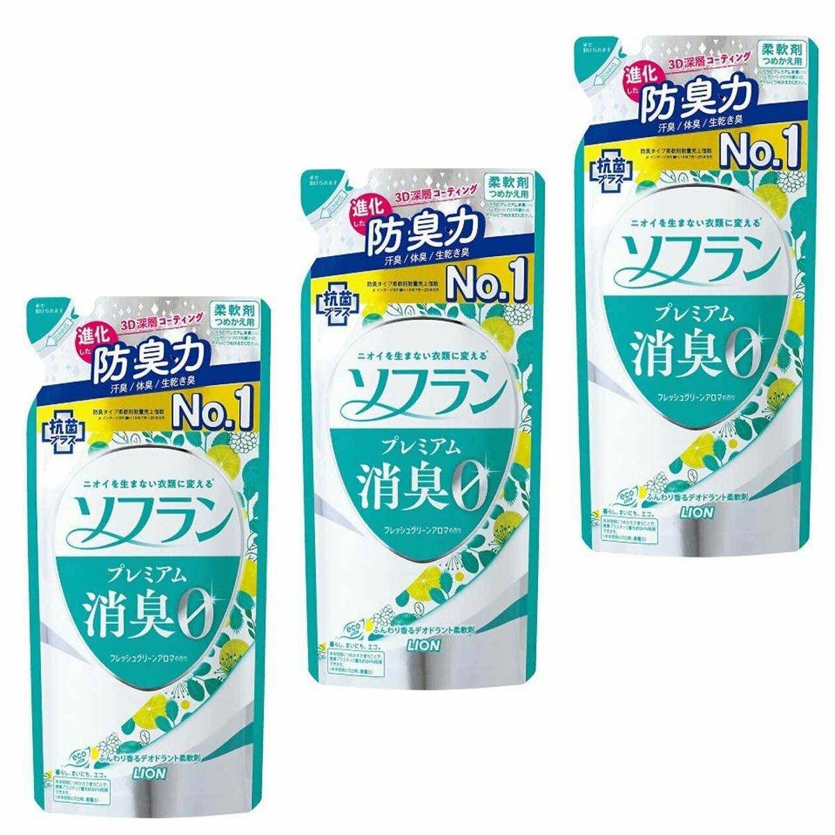 LION Кондиционер для белья "SOFLAN" (с мощным антибактериальным эффектом для защиты от неприятного запаха "Premium Deodorizer 018" - натуральный фруктовый аромат) 380 мл, мягкая упаковка