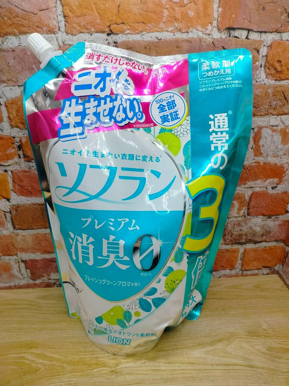 Купить Кондиционер для белья LION Soflan Premium Fresh Green Aroma, с ароматом свежей зелени и фруктов, мягкая упаковка с колпачком, 1260мл.