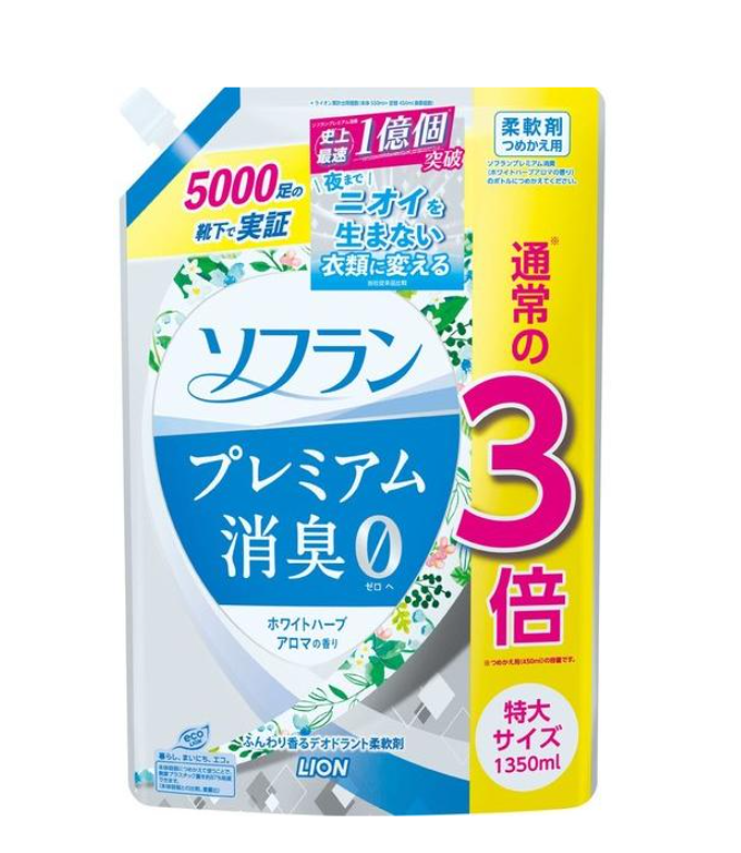 LION Кондиционер для белья SOFLAN Premium Deodorizer Zero- аромат роз,1260мл