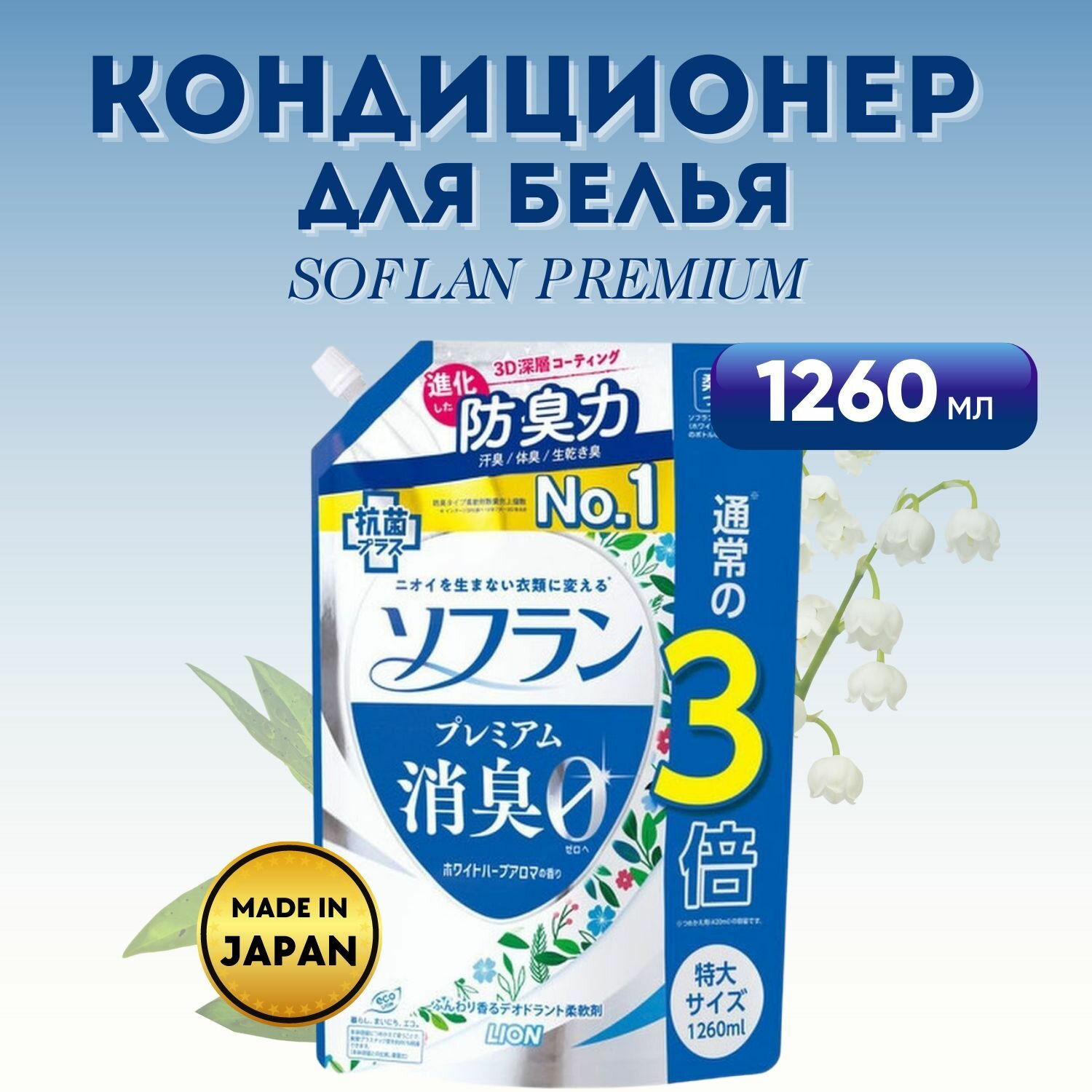 Lion Кондиционер для белья с ароматом луговых трав и цветов Soflan Premium Aroma Herb, 1260 мл (мягкая упаковка с крышкой)