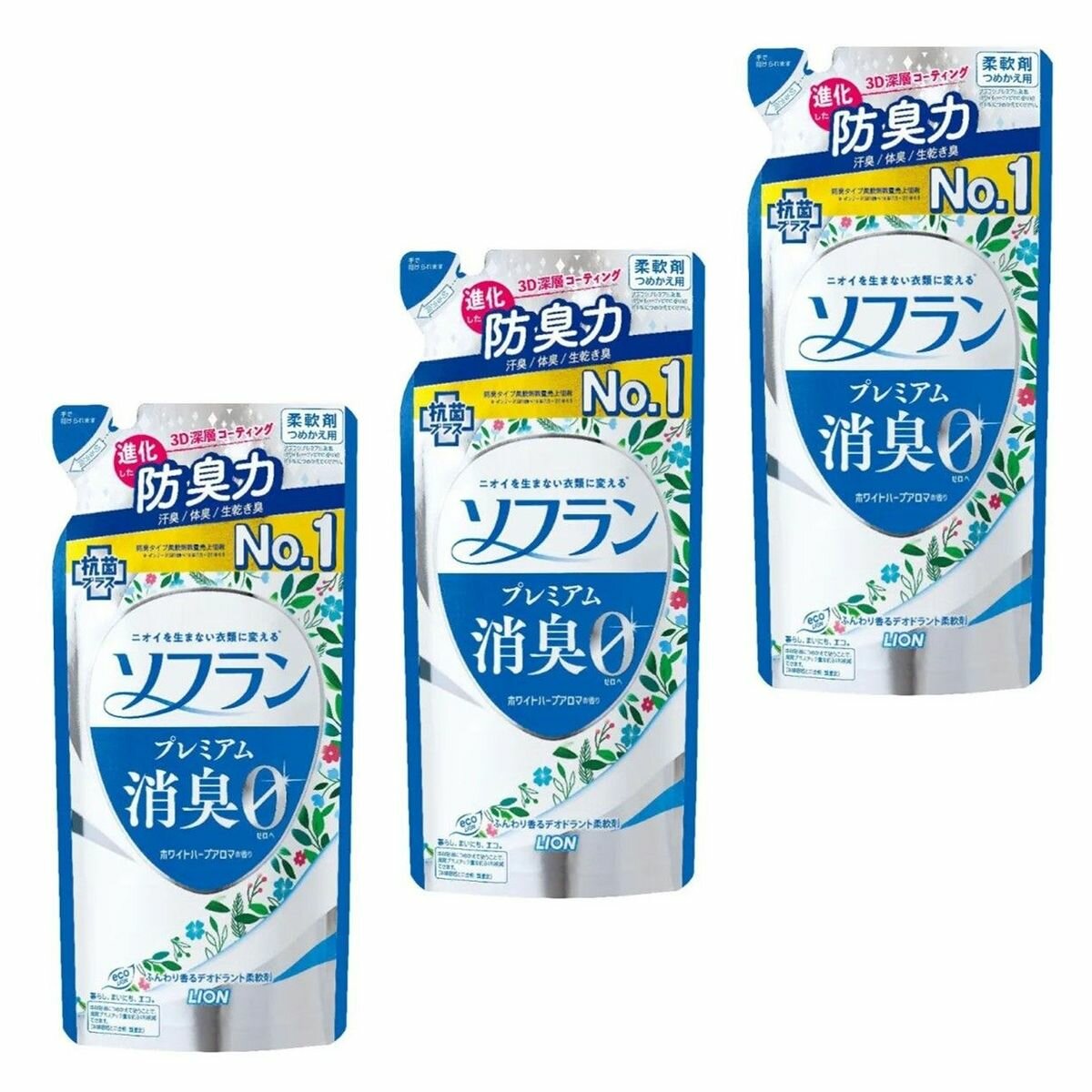 Lion Soflan Premium Deodorizer Zero 0 Кондиционер для белья защищающий от неприятного запаха до вечера с ароматом роз 420 мл запасной блок