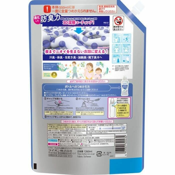 LION Кондиционер для белья "SOFLAN" (с длительной 3D-защитой от неприятного запаха "Premium Deodorizer натуральный фруктовый аромат 550мл