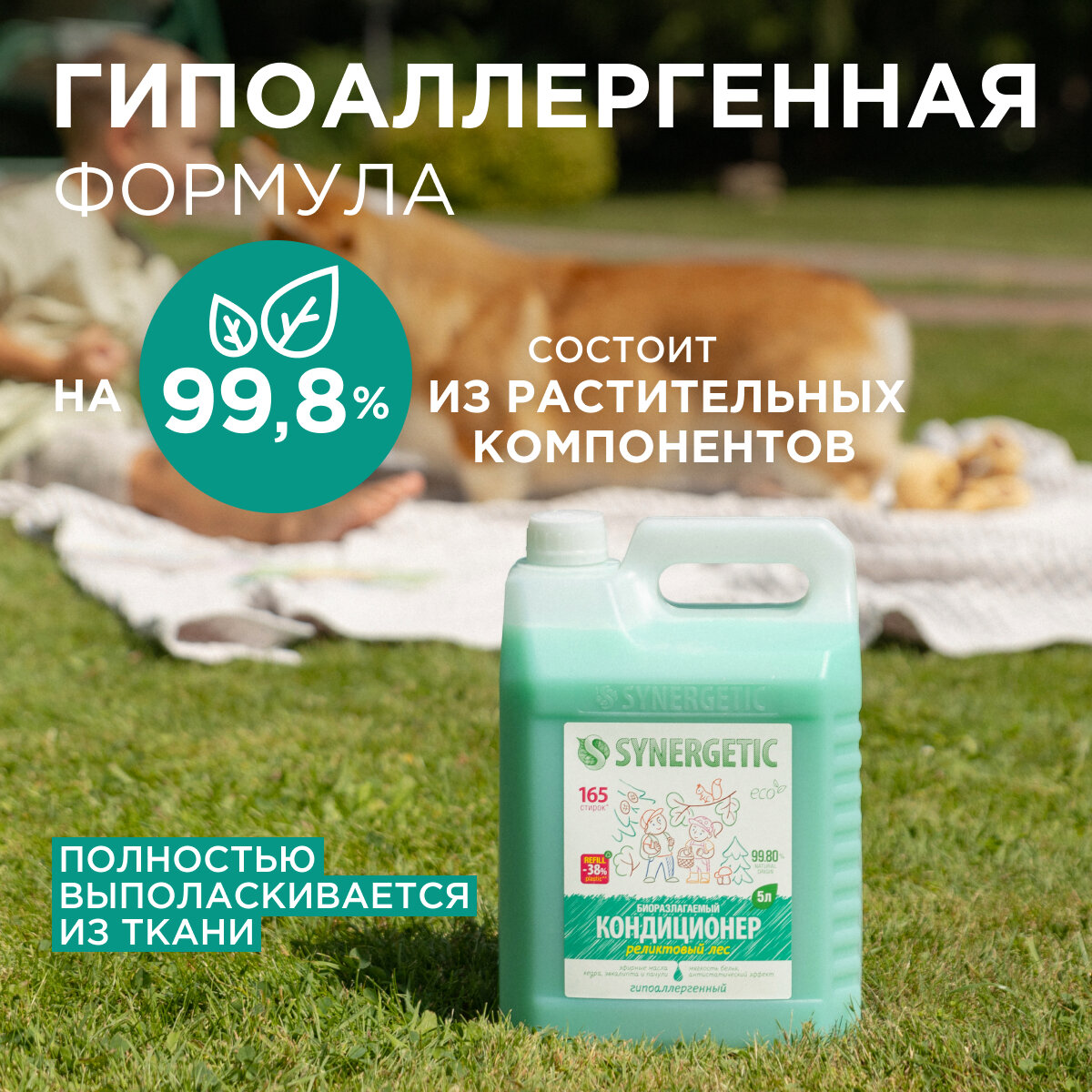 Кондиционер для белья Synergetic гипоаллергенный, с антистатическим эффектом, 5 л .