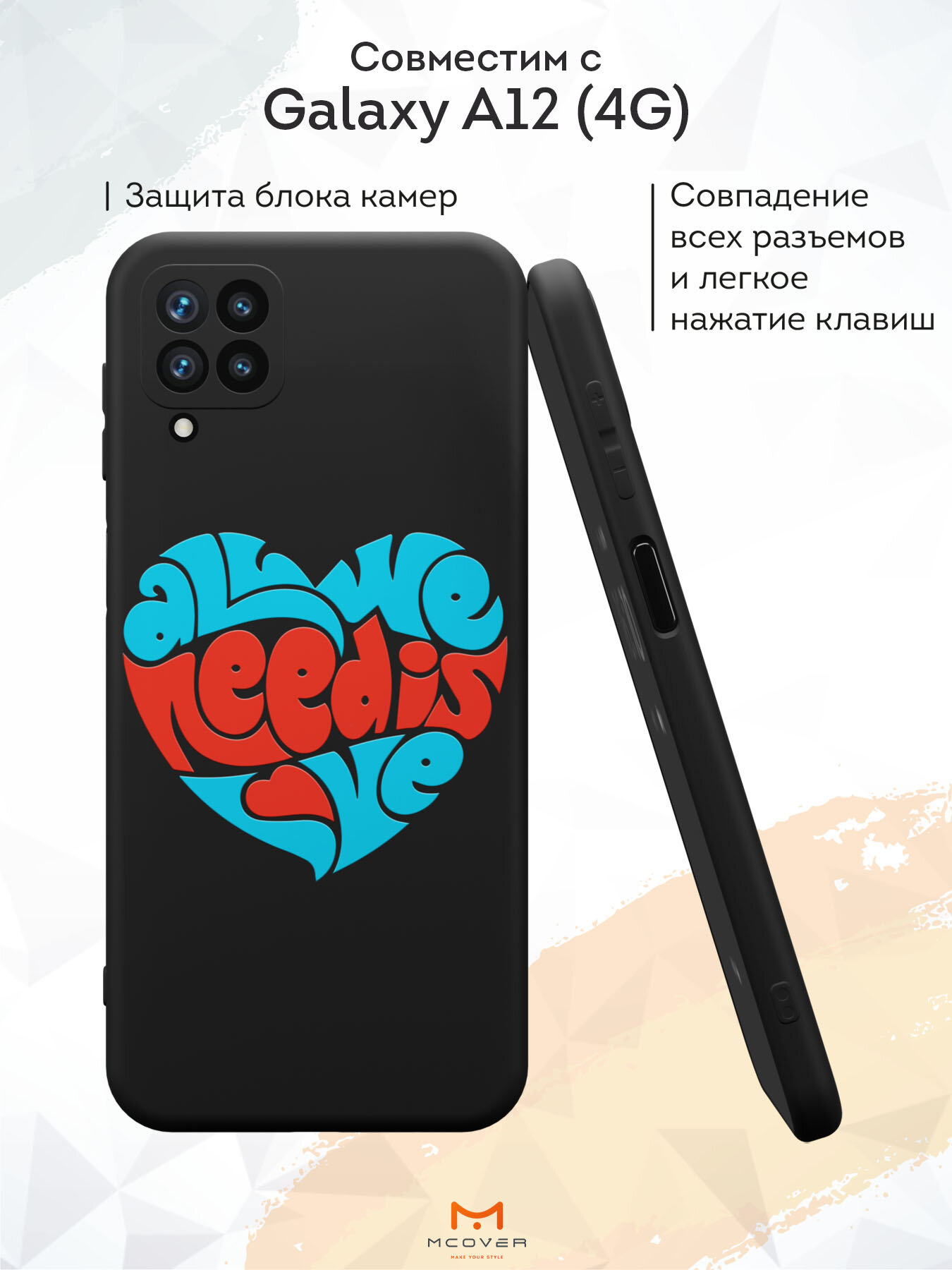 СохранитьСиликоновый чехол Mcover на Galaxy A12 (для Самсунг Галакси А12), All we need is love интересное: