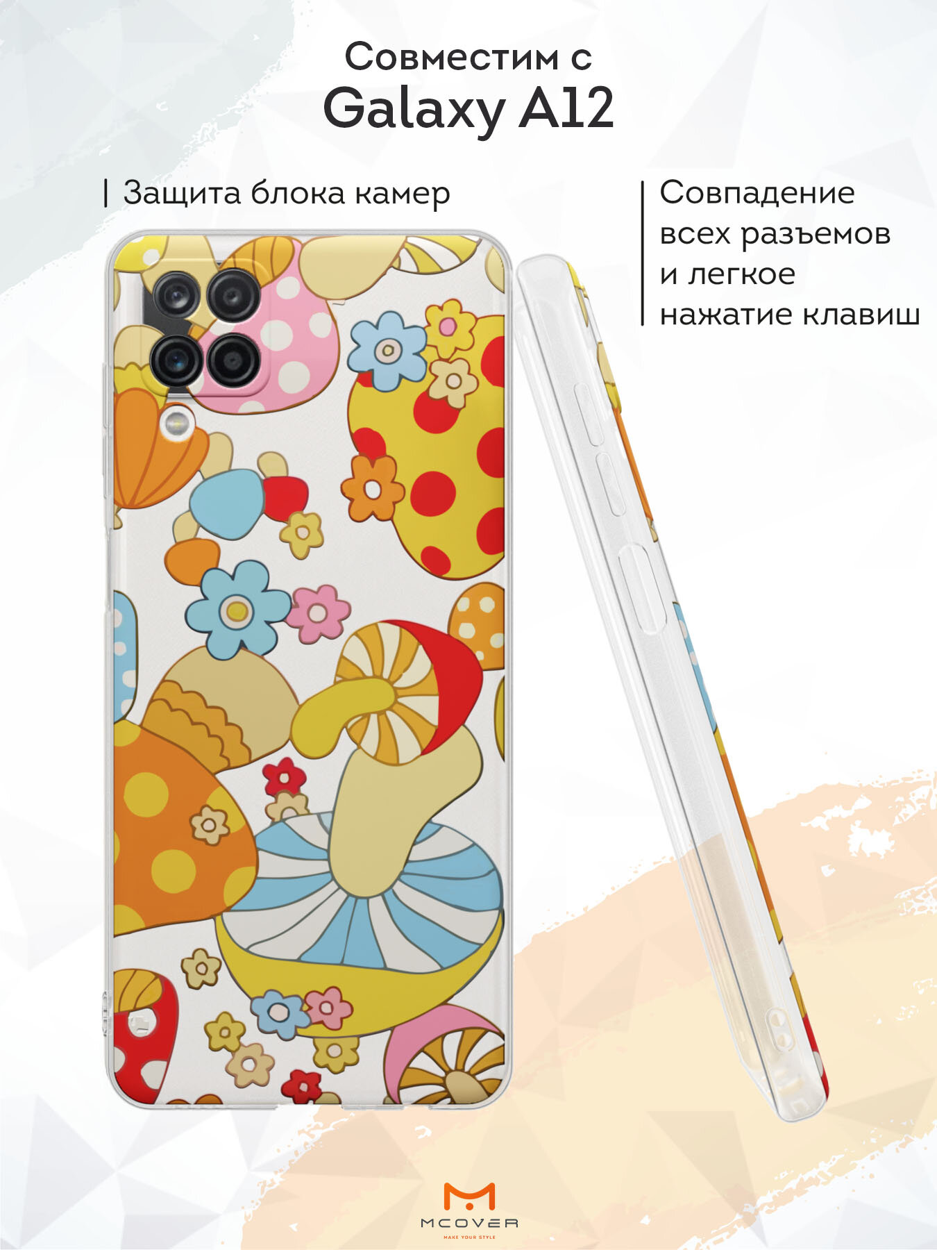 Силиконовый чехол Mcover на Galaxy A12 (для Самсунг Галакси А12), Разноцветные грибы