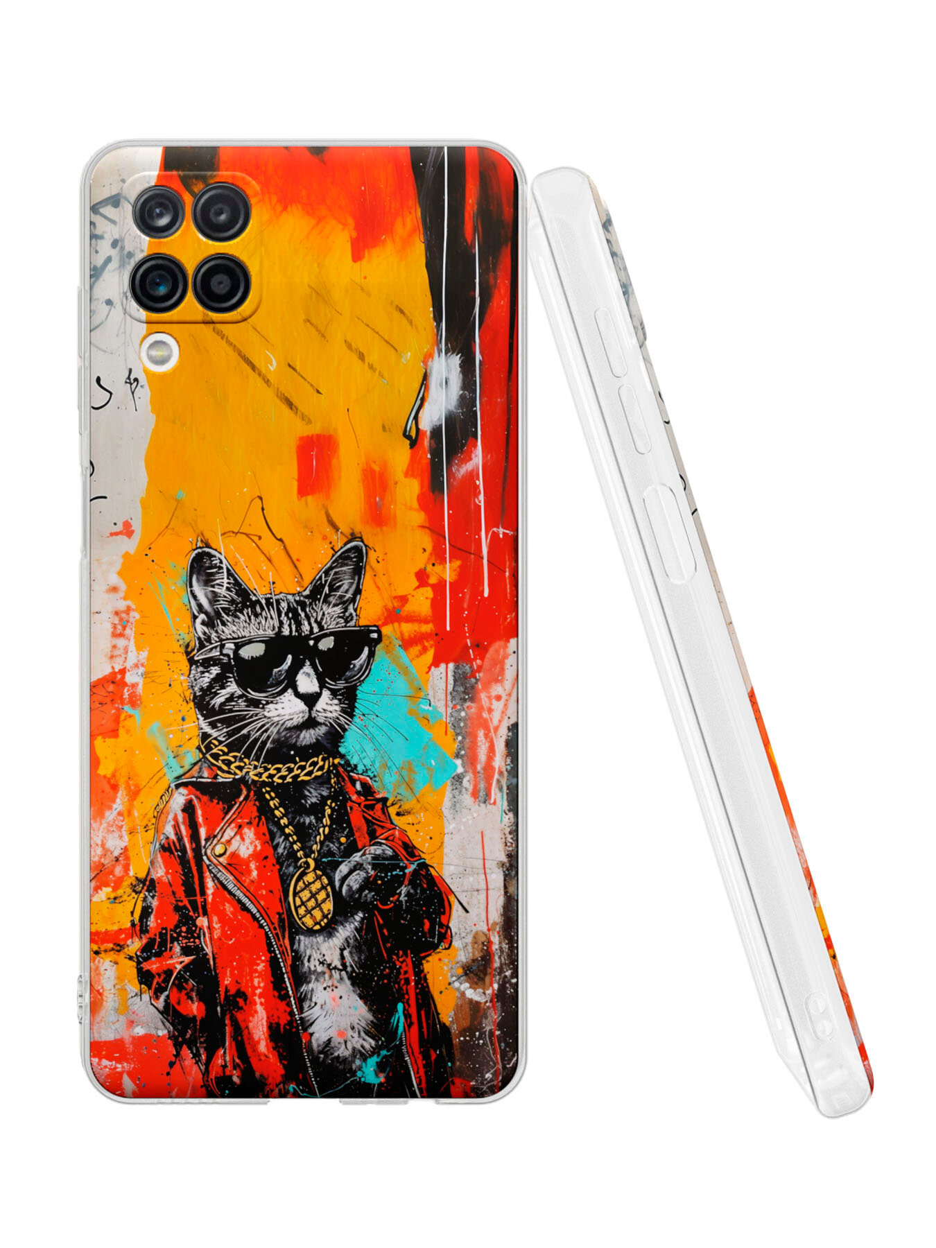 Силиконовый чехол Mcover на Samsung Galaxy A12 (для Самсунг Галакси А12), Stylish cat