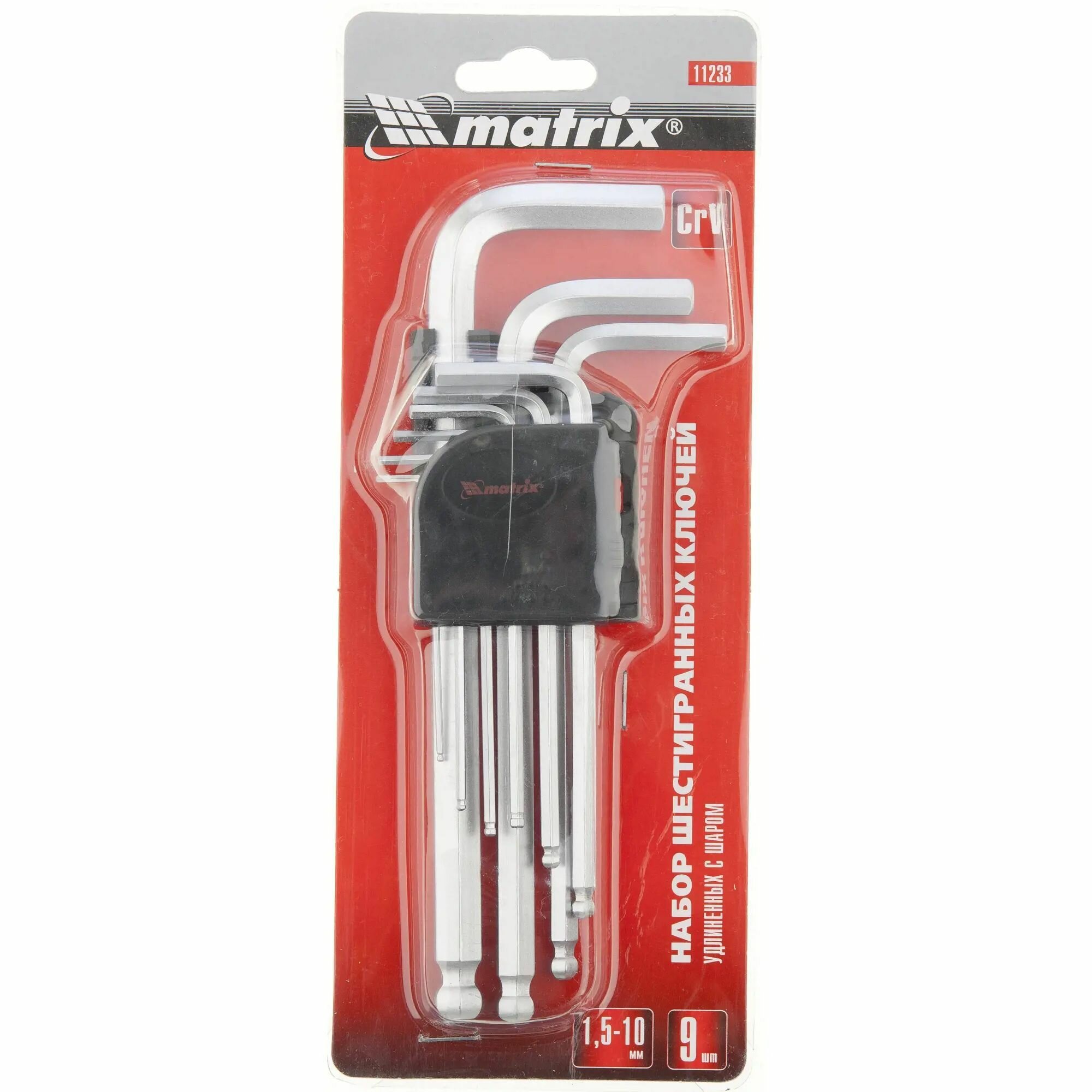 Набор шестигранных ключей Matrix 11233 HEX, 1,5–10 мм, CrV, 9 шт, удлиненные, сатин, с шаром