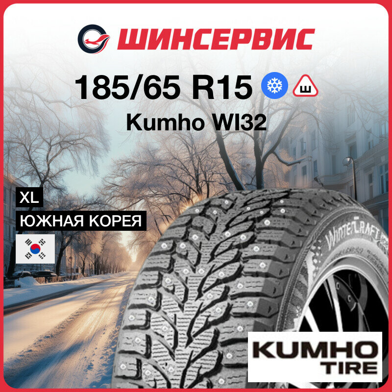Шины зимние для легковых автомобилей Кумхо 185/60/15 T 88 WI-32 XL Ш, шипованные, индикатор износа