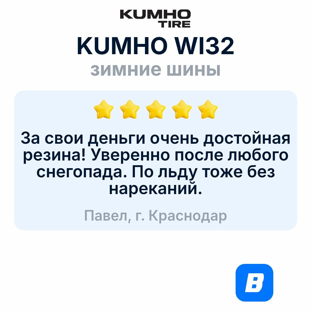 | Отзыв: | Приобрел на Ford Explorer 4 шт. Kumho Wintercraft WS71 255/50 R20 109V. Эксплуатация в условиях города 99%. Отличная резина и адекватная цена. Прекрасно подойдет для условий городов ЮФО. Производство Корея, лето 2019 года. Отличные шины. |