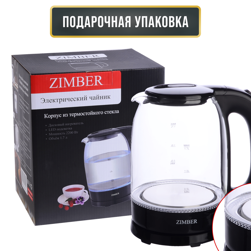 Купить Электрический чайник обьемом 1,7 л с подсветкой ZIMBER