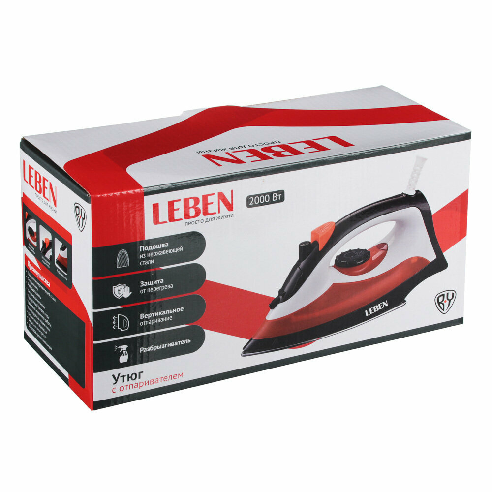 Купить Утюг с отпаривателем 2000 Вт LEBEN, подошва - нерж. сталь