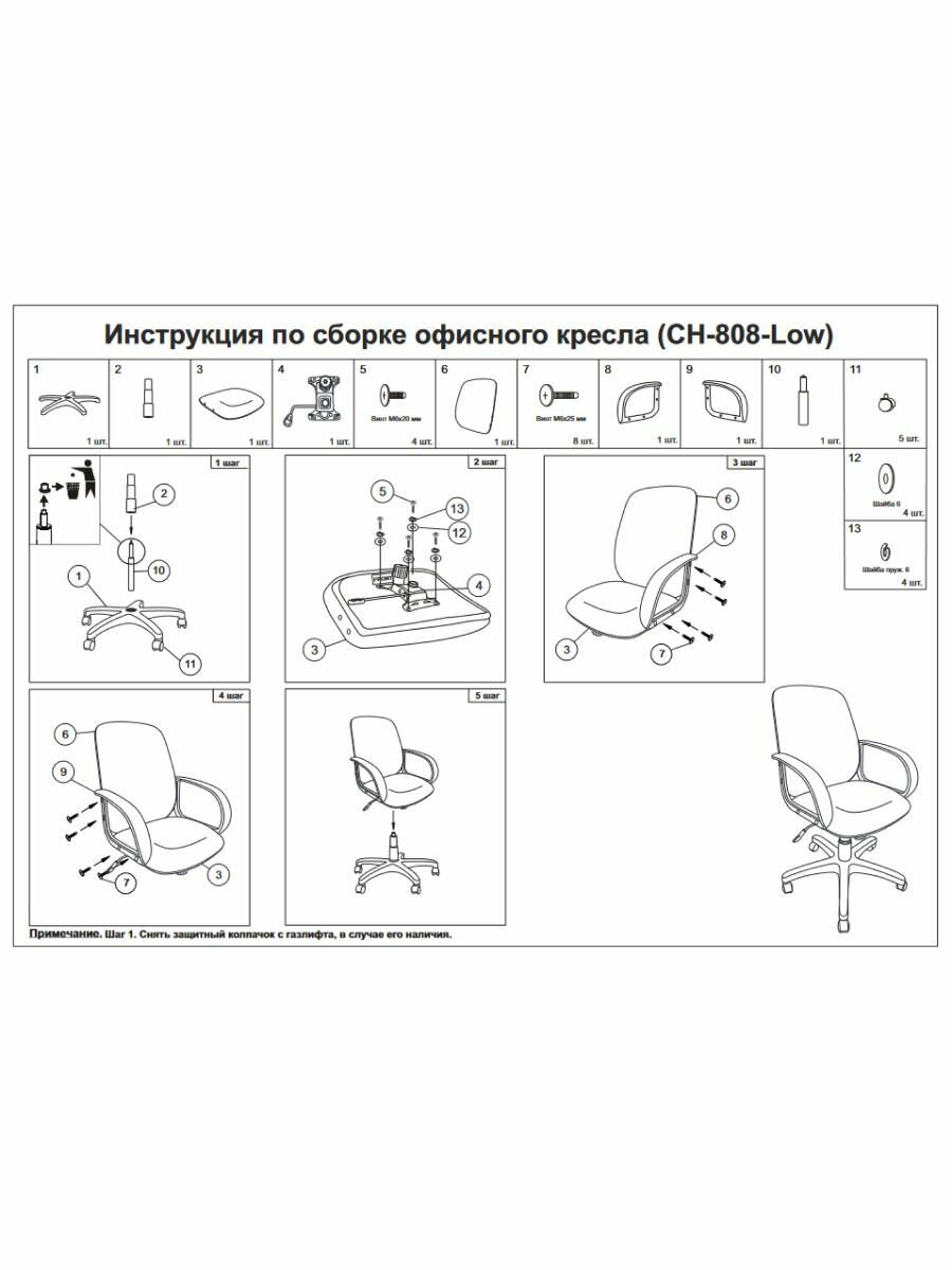 Кресло офисное CH-808-LOW серый, ткань / Компьютерное кресло для оператора, персонала, сотрудника, для дома