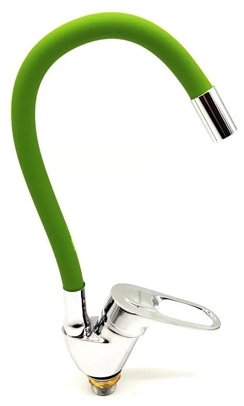Смеситель д/кухни картридж d-35, на гайке, гибкий излив зеленый R3193F-7 RAINSBERG
