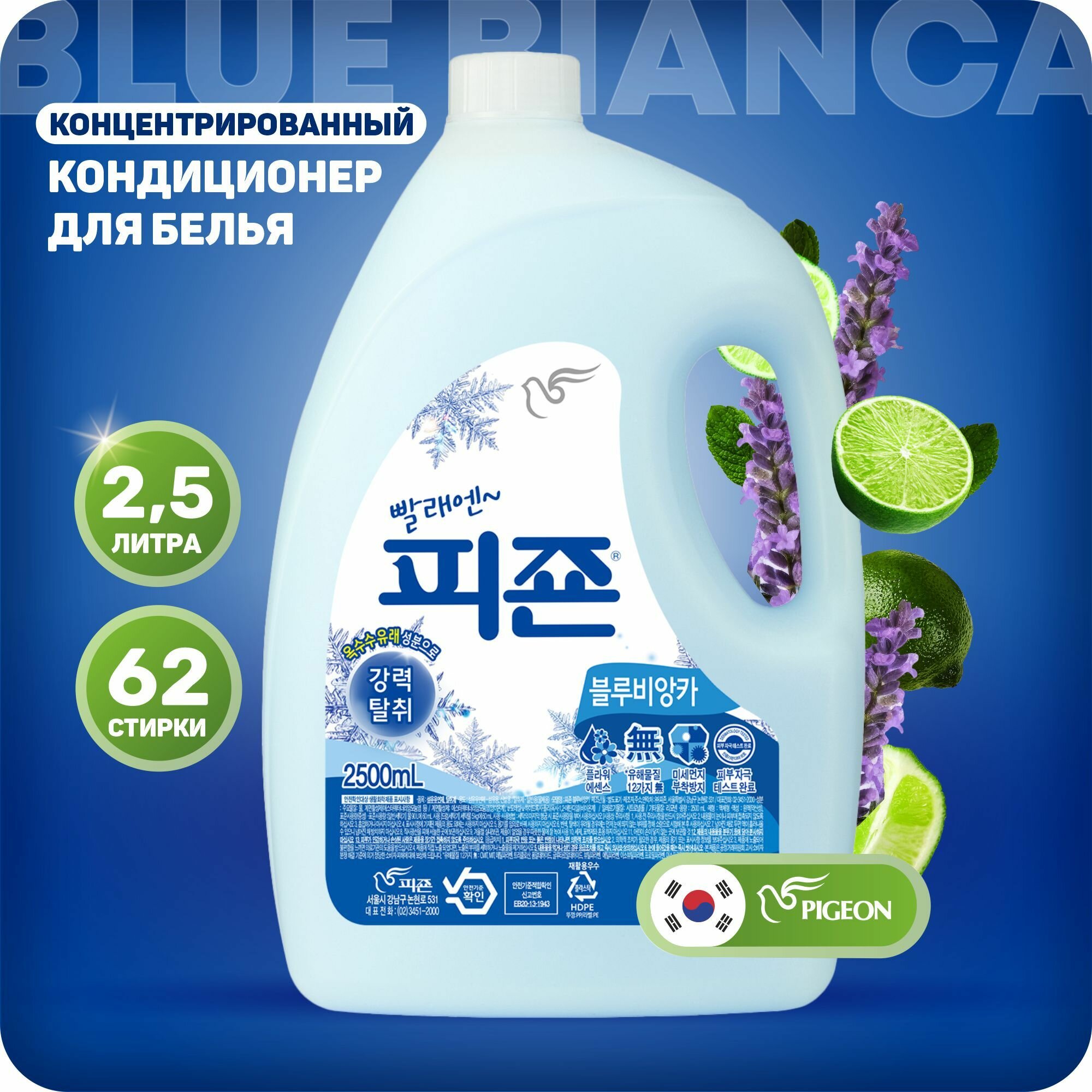 Pigeon Концентрированный кондиционер для белья Blue Bianca, 3.1 л, 3.1 кг
