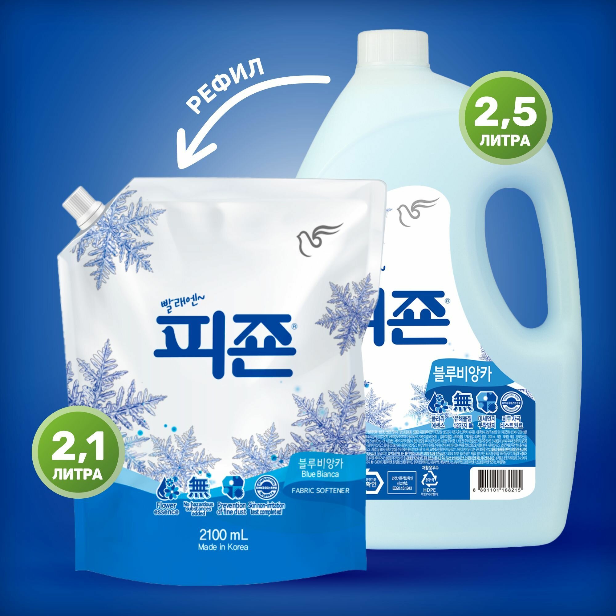 Кондиционер для белья концентрированный, ополаскиватель для белья Primium Bianca Breeze аромат белой маргаритки, 2100 мл, Корея