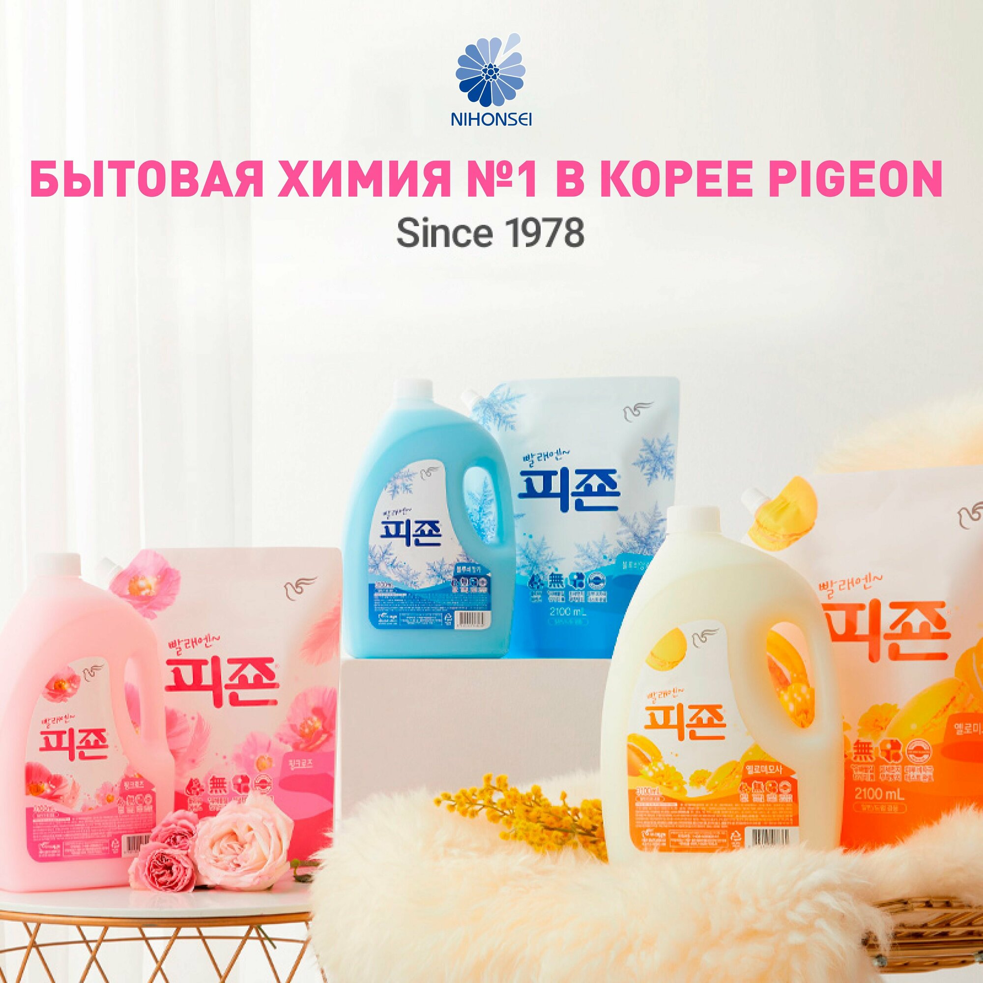 Pigeon Кондиционер концентрированный для белья 2100 мл, с ароматом розы, Premium Rose Blossom, Корея