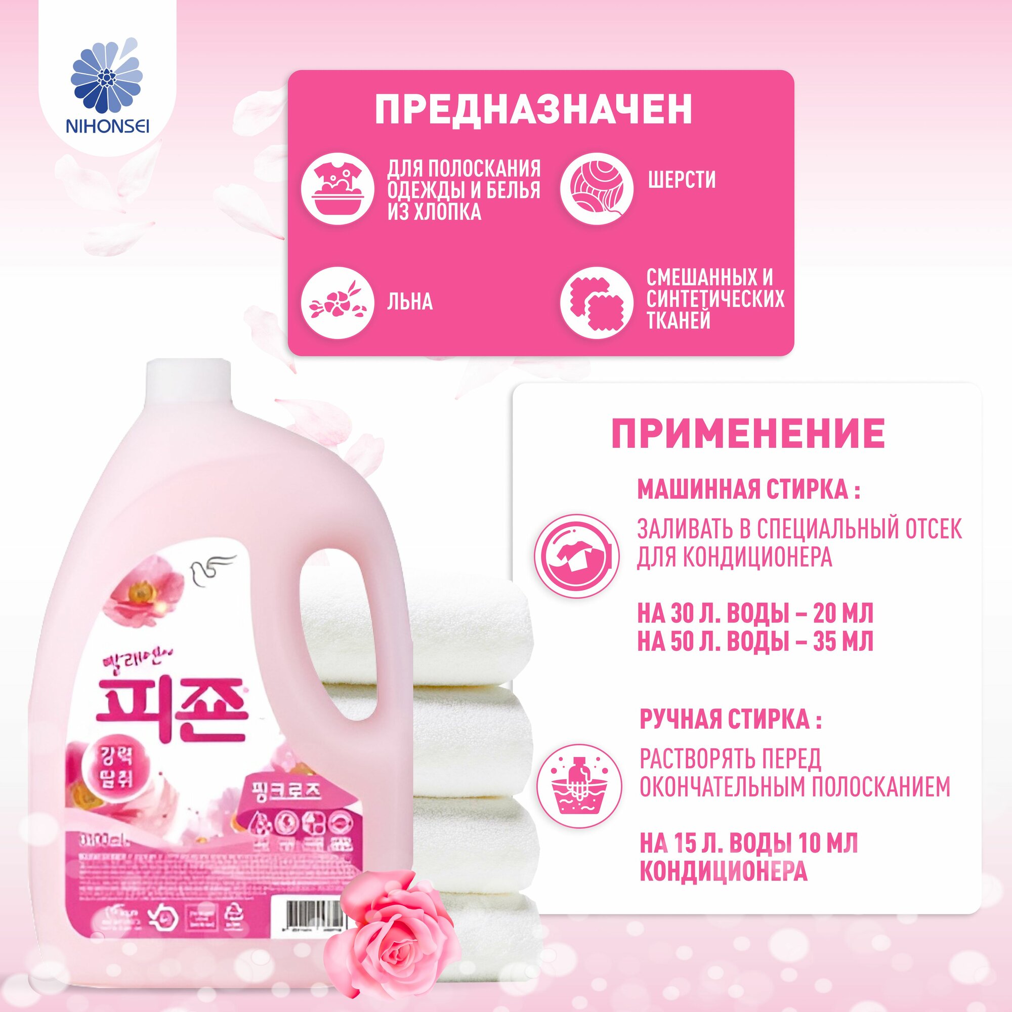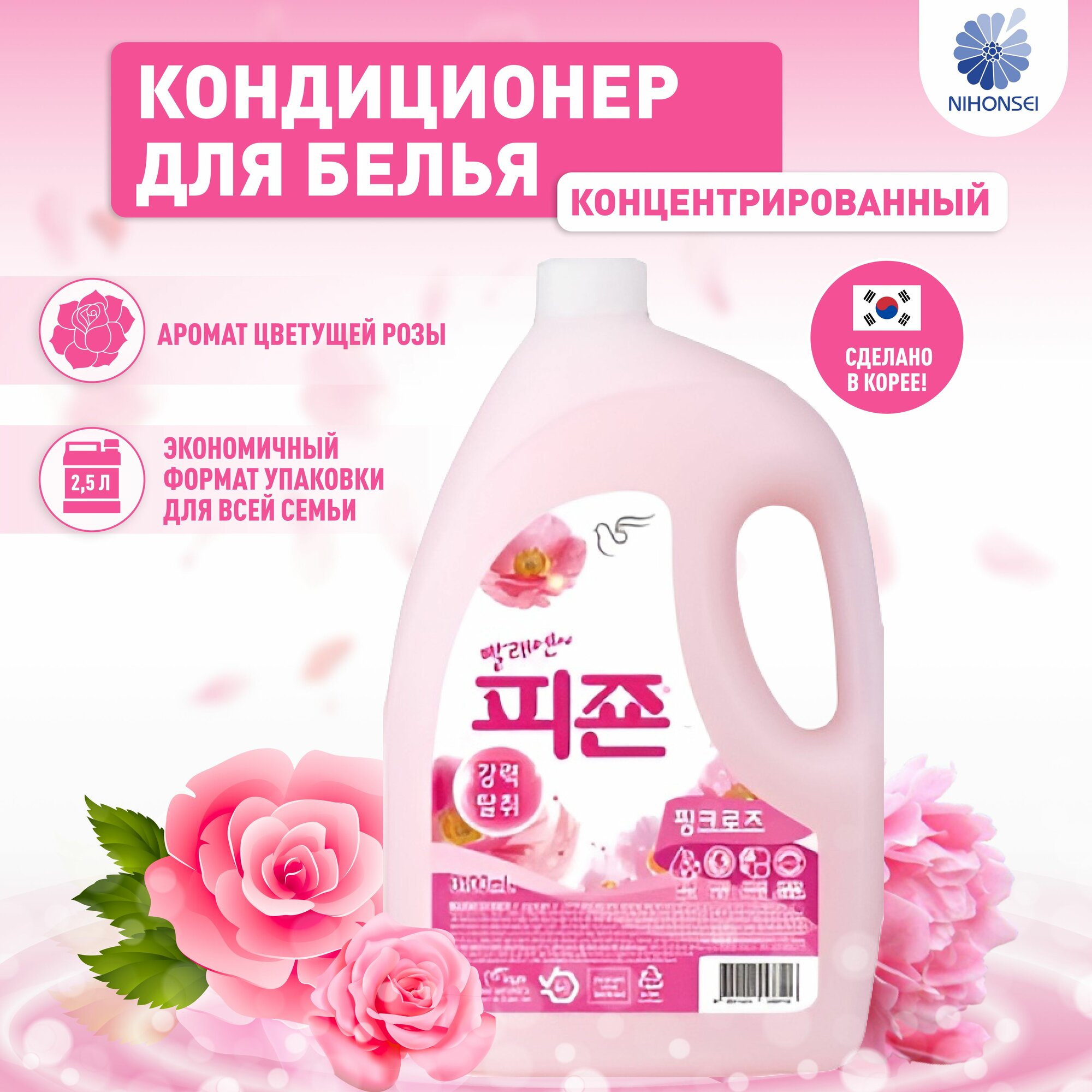 Кондиционер-ополаскиватель для белья Pigeon (korea) PIGEON концентрированный, с ароматом розы 2,5 л